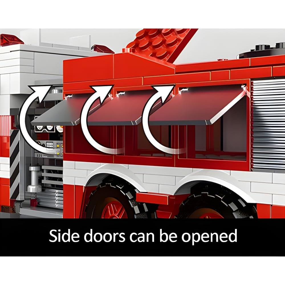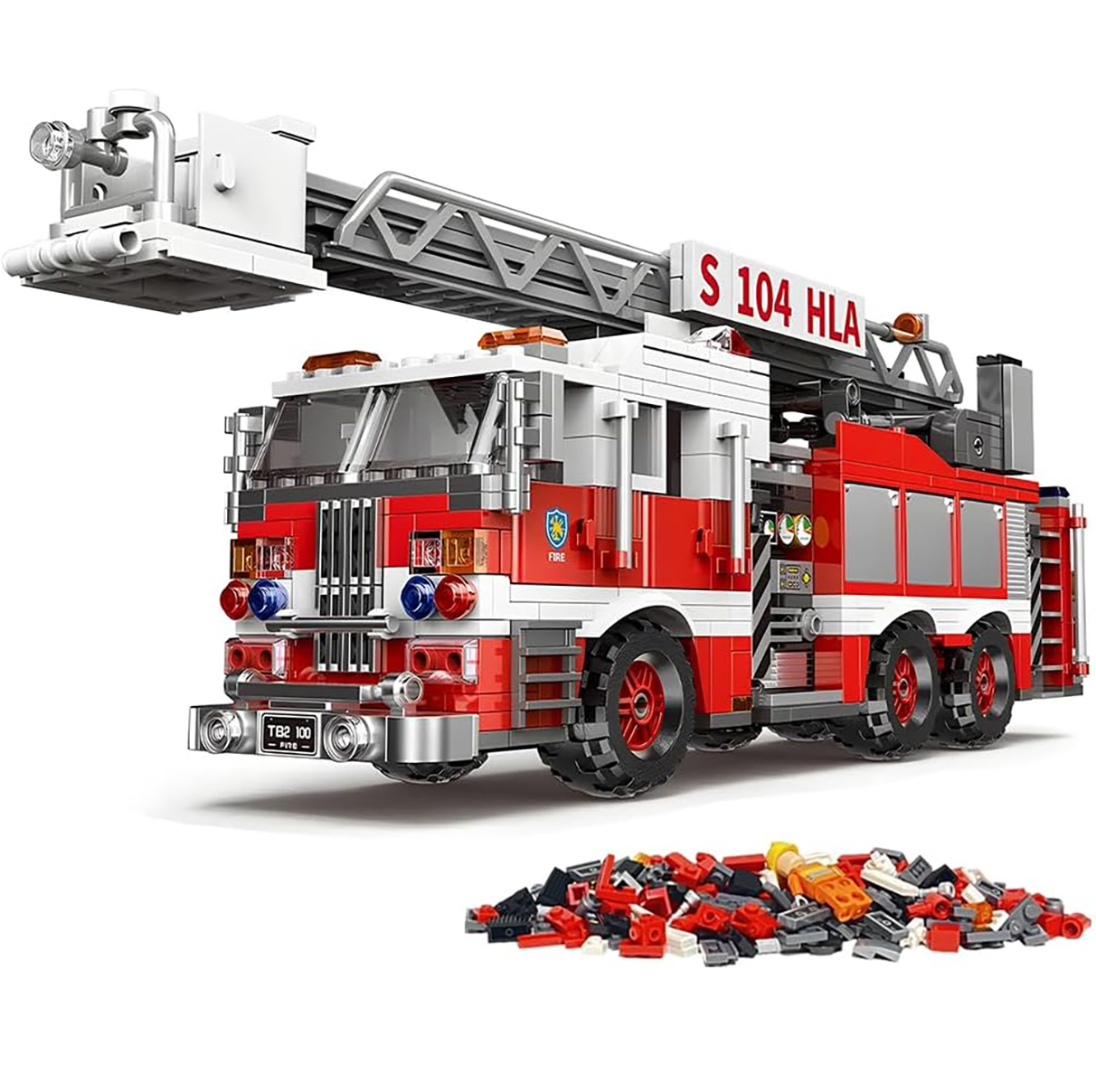 Set de Construcit din 711 piese - Mașină de Pompieri cu Scară Rotativă, pentru copii 6+